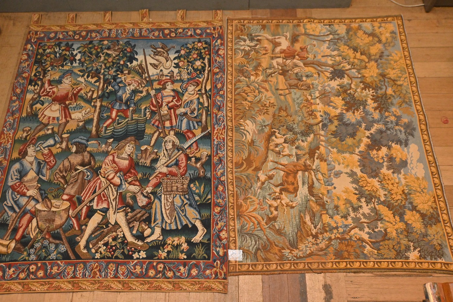 TWO HANGING TAPESTRIES, EACH IN ANTIQUE MANNER (166 X120 CM) (LEONARD JOEL DELIVERY SIZE: LARGE)