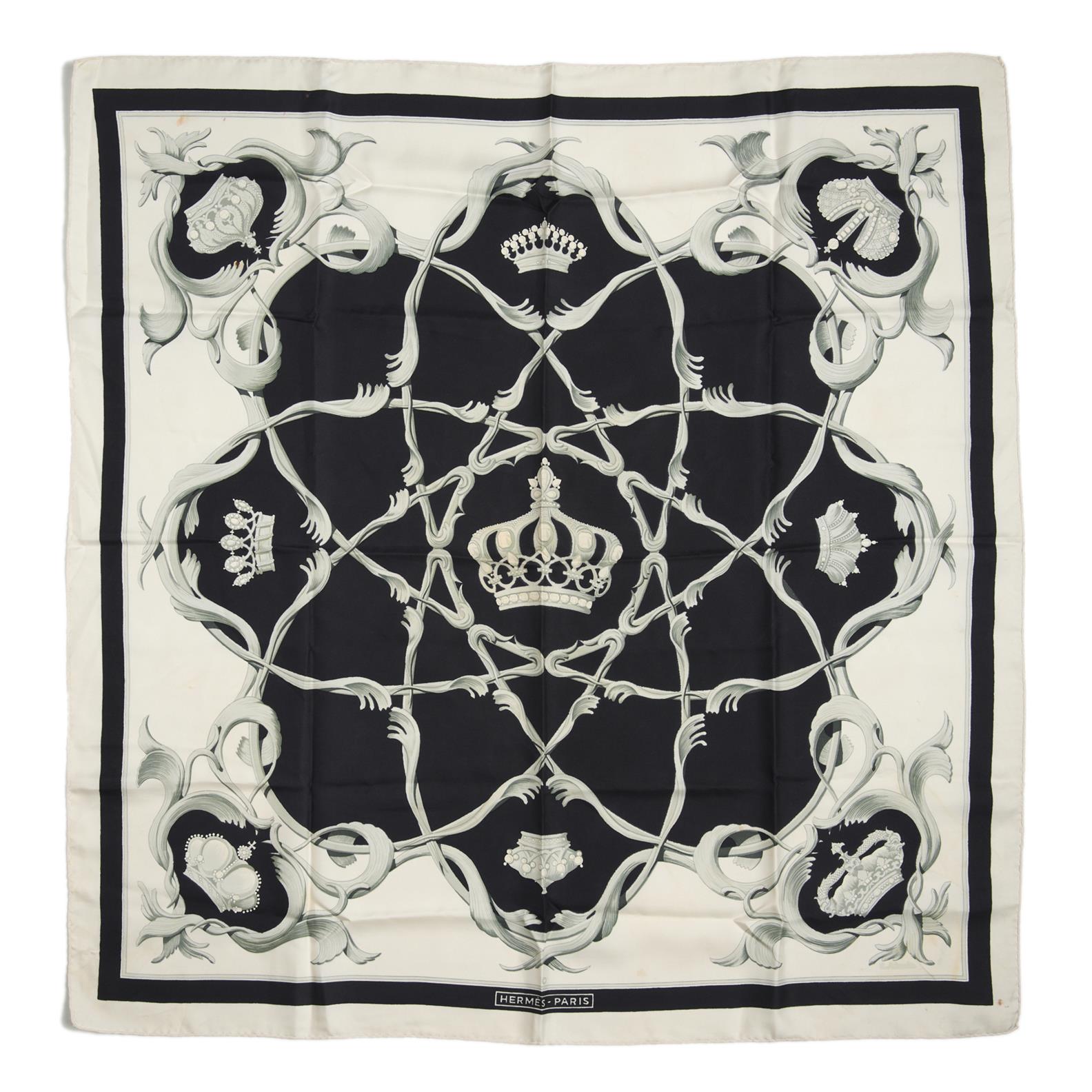 HERMÈS, A SILK CARRÉ 'CROWNS COURROUNE' BY JULIA ABADIE, 90CM SQUARED