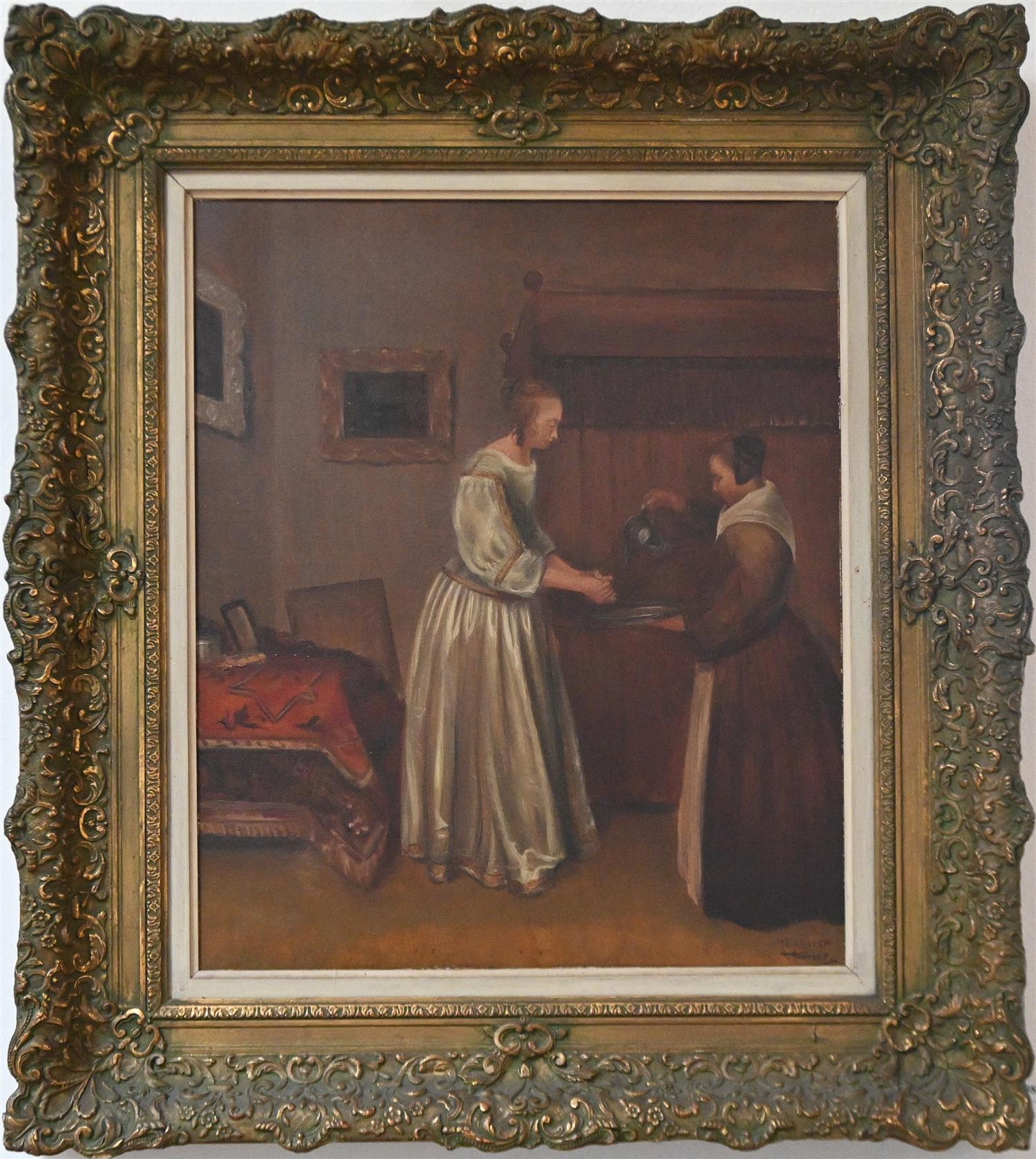 JEAN JULIEN GODENNE, (LADY AND MAID), OIL ON CANVAS, SIGNED LOWER RIGHT, 58 X 48CM, FRAME SIZE: 83 X 74CM
