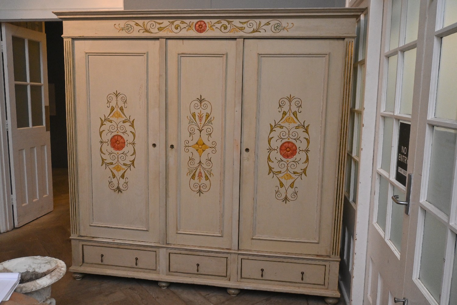 A FRENCH PAINTED WARDROBE - KEY IN OFFICE (A/F) (201H X 210W X 68D CM) (PLEASE NOTE THIS HEAVY ITEM MUST BE REMOVED BY CARRIERS AT THE CUSTOMER'S EXPENSE. LEONARD JOEL STAFF CANNOT ASSIST CARRYING THIS ITEM) (LARGE ITEM)