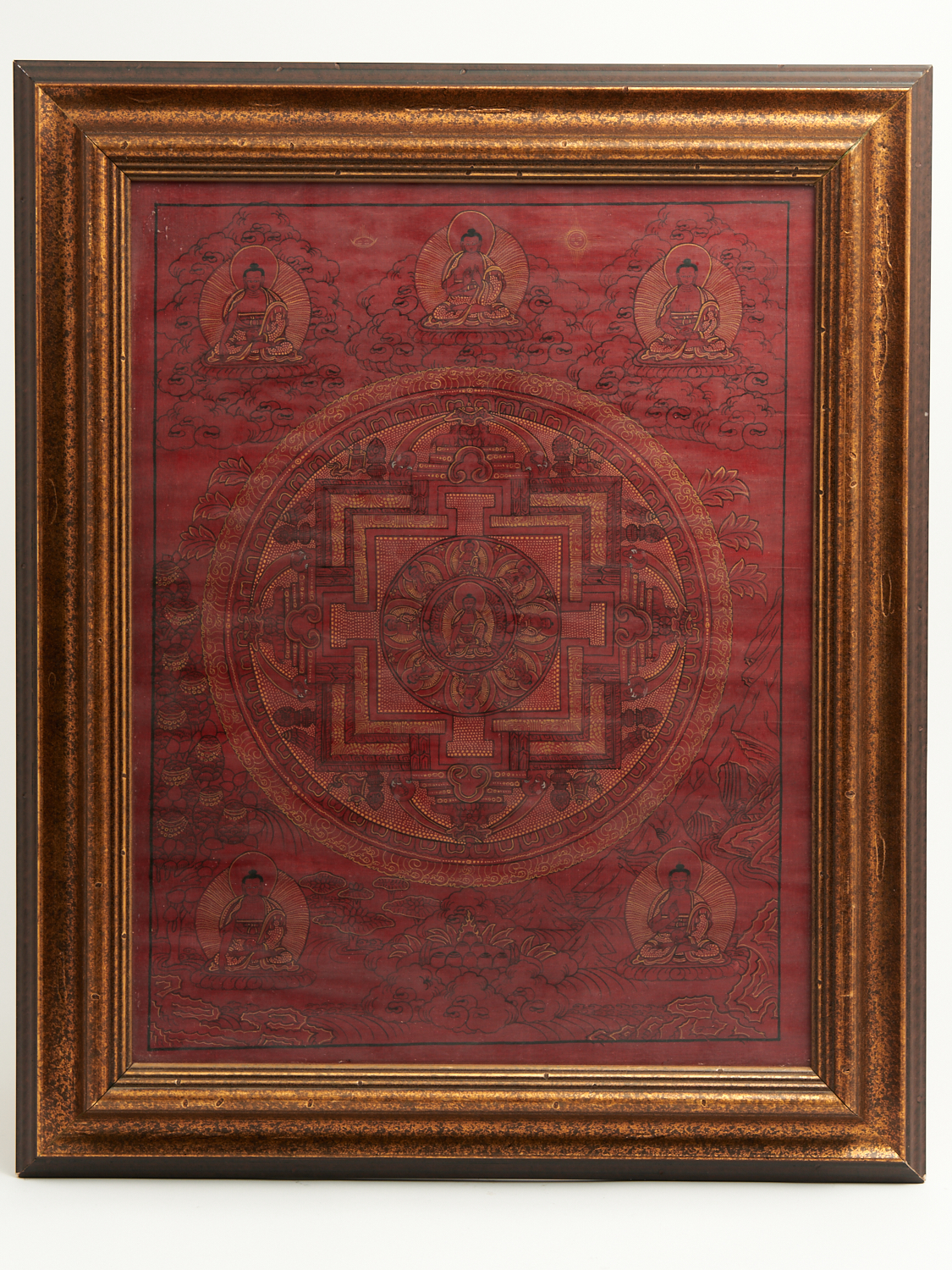 A FRAMED TIBETAN THANGKA HAND-DRAWN IN GOLD 60.5 X 50CM, LEONARD JOEL DELIVERY SIZE: MEDIUM