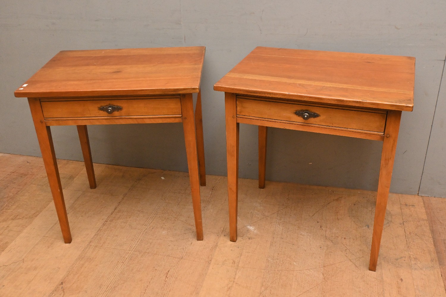 A PAIR OF ANTIQUE STYLE CHERRYWOOD LOW SIDE TABLES (A/F) (70H X 63W X 50D CM) (LEONARD JOEL DELIVERY SIZE: X-LARGE)