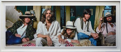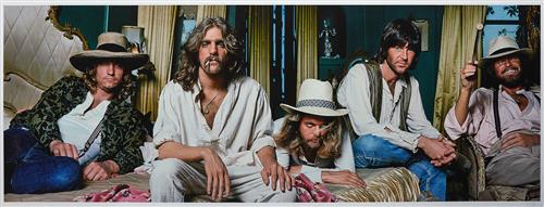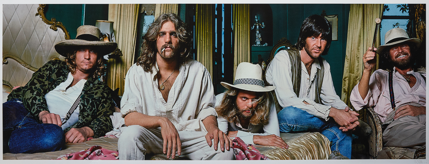 "Soon after commencing this session, the band walked out. I had no idea why at the time. A week later, I showed them a poster design I had created by combining a number of individual shots. They loved it and all was forgiven. It became a poster insert for the HOTEL CALIFORNIA album. I shot the Eagles 2 years later for a ROLLING STONE cover and recently re-designed the original poster in color for the re-release of the HOTEL CALIFORNIA vinyl. This is the result."