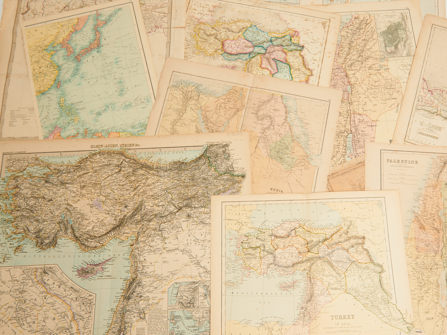 A COLLECTION OF 14 ANTIQUE MAPS OF OCEANIA, ASIA, INDIA, PALESTINE, TURKEY (ANATOLIA) MID TO LATE 19TH CENTURY FROM THE COLLECTION OF THE LATE DR JOHN O'HAGAN AM, LEONARD JOEL DELIVERY SIZE: SMALL