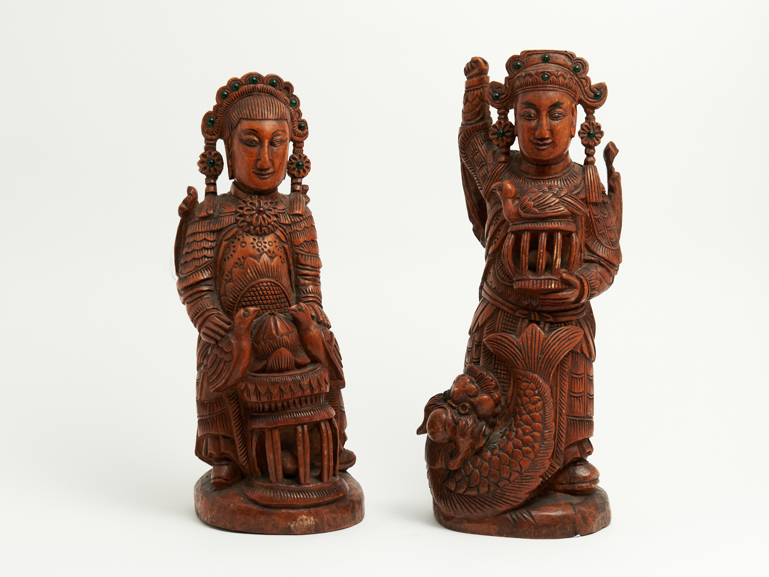 A PAIR OF CARVED CHINESE FIGURES 19TH/20TH CENTURY H.50CM (TALLEST), LEONARD JOEL DELIVERY SIZE: MEDIUM