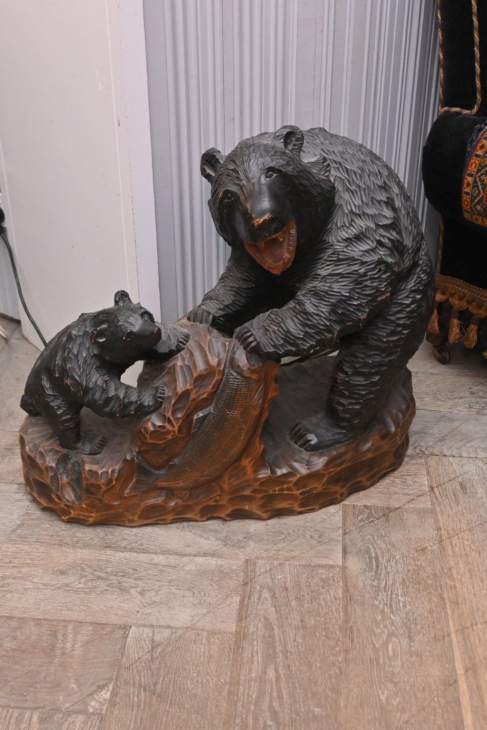 A JAPANESE AINU CARVED STATUE OF TWO BEARS (62H X 73W X 32D CM) (LEONARD JOEL DELIVERY SIZE: LARGE)