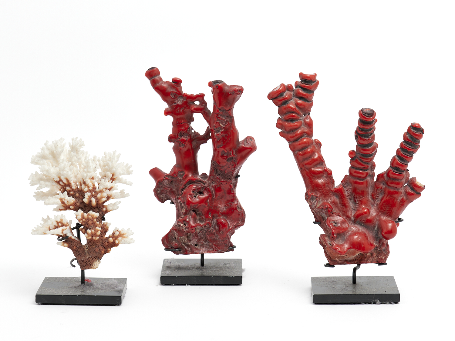THREE CORAL SPECIMENS H.23CM (TALLEST), LEONARD JOEL DELIVERY SIZE: MEDIUM