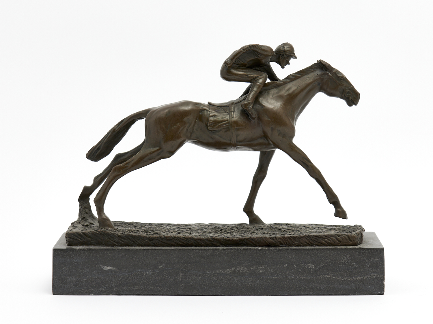 A BRONZE FIGURE OF JOCKEY AND HORSE, SIGNED MILA W.29CM, LEONARD JOEL DELIVERY SIZE: SMALL