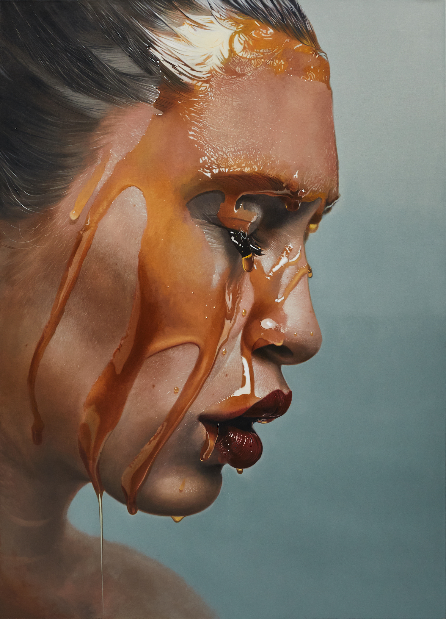 "Mike Dargas' love for precision, almost obsessive, brings models to life under his brush stroke and draws us into a dreamlike world where time has suspended. His breath-taking large-scale portraits, all striking with their liveliness and expressionism, will transport the public into a world of intimacy and sensuality; and the lingering