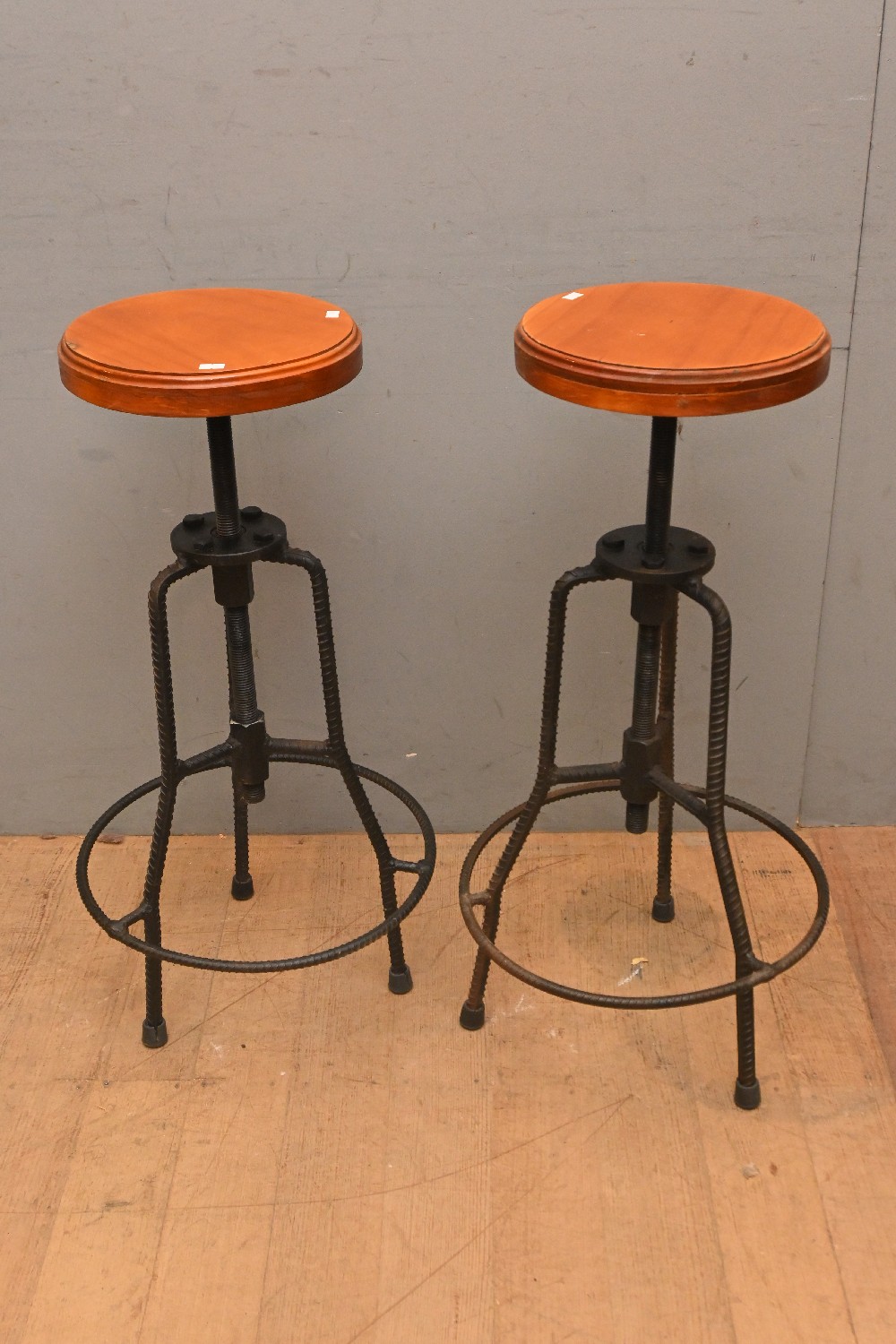 A PAIR OF INDUSTRIAL SWIVEL STOOLS (80H X 40D CM) (LEONARD JOEL DELIVERY SIZE: LARGE)