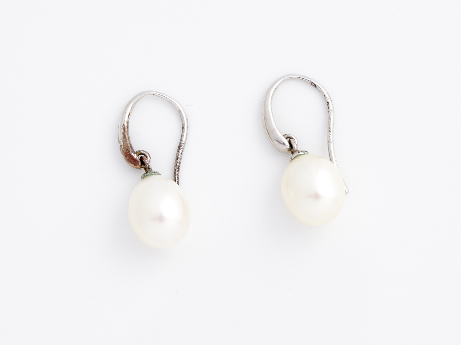 RUTHERFORD, A PAIR OF SOUTH SEA PEARL EARRINGS, TO SHEPHERD HOOK FITTINGS IN SILVER PLATE