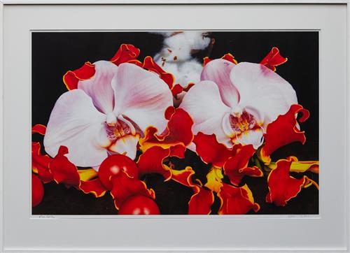 Quinn's 'Flower Series' utilises one of the oldest forms of traditional painting; the still-life. Quinn combines arrangements of flowers and fruit in his studio, bought in London on a particular day, which would often never be found in the natural world together at the same time. In this way the artist shows us how human desire has created new seasons by assembling items together in his studio which nature could not. The arrangements, often set amid a snowy ground or volcanic sand, are then painted in oil by Quinn and these paintings turned into print editions such as the present lot.