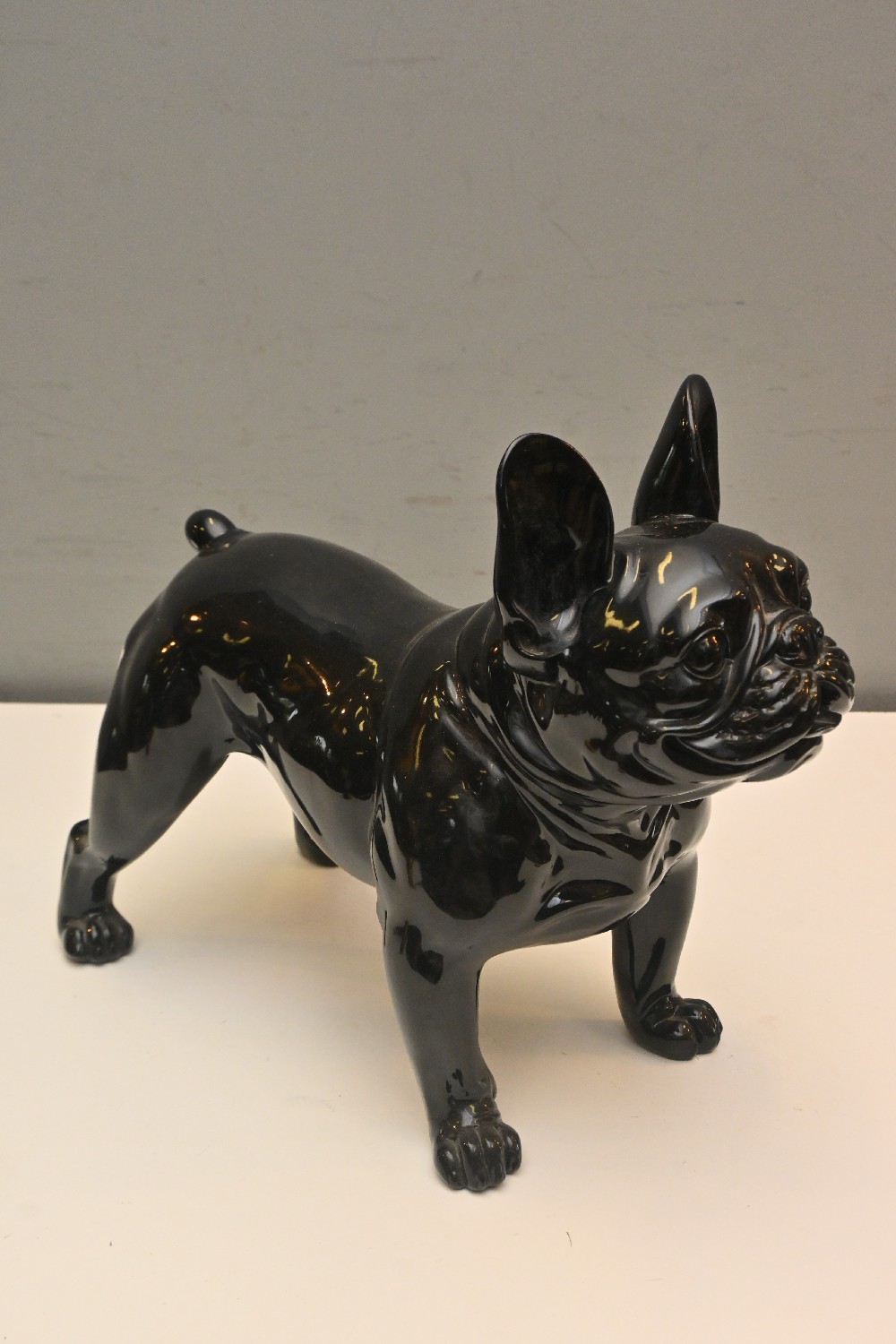 A BLACK GLAZED MODEL OF A FRENCH BULLDOG (39H X 21W X 51D CM) (LEONARD JOEL DELIVERY SIZE: MEDIUM)