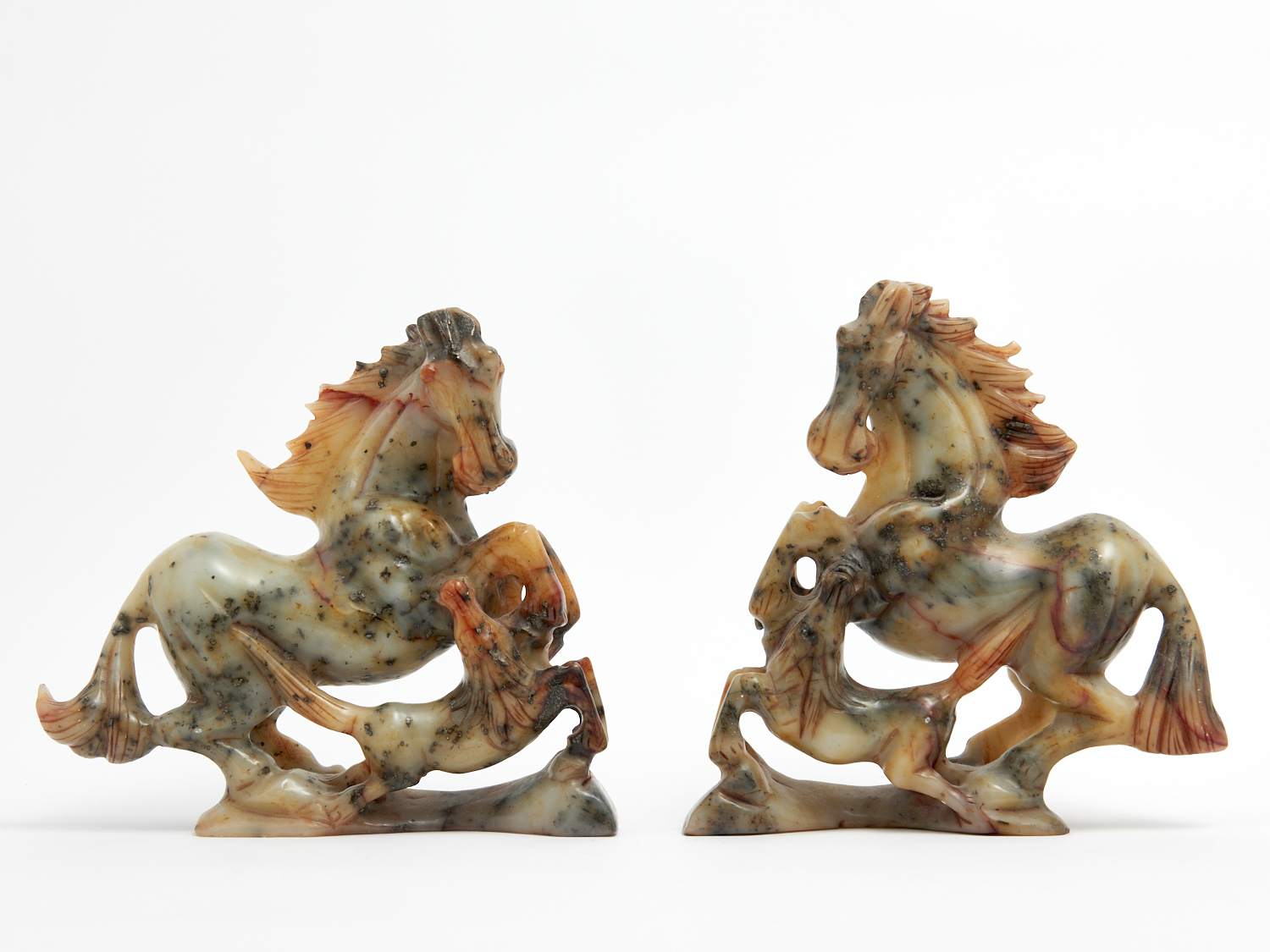 A PAIR OF CHINESE STONE CARVED HORSES H.21CM, LEONARD JOEL DELIVERY SIZE: MEDIUM