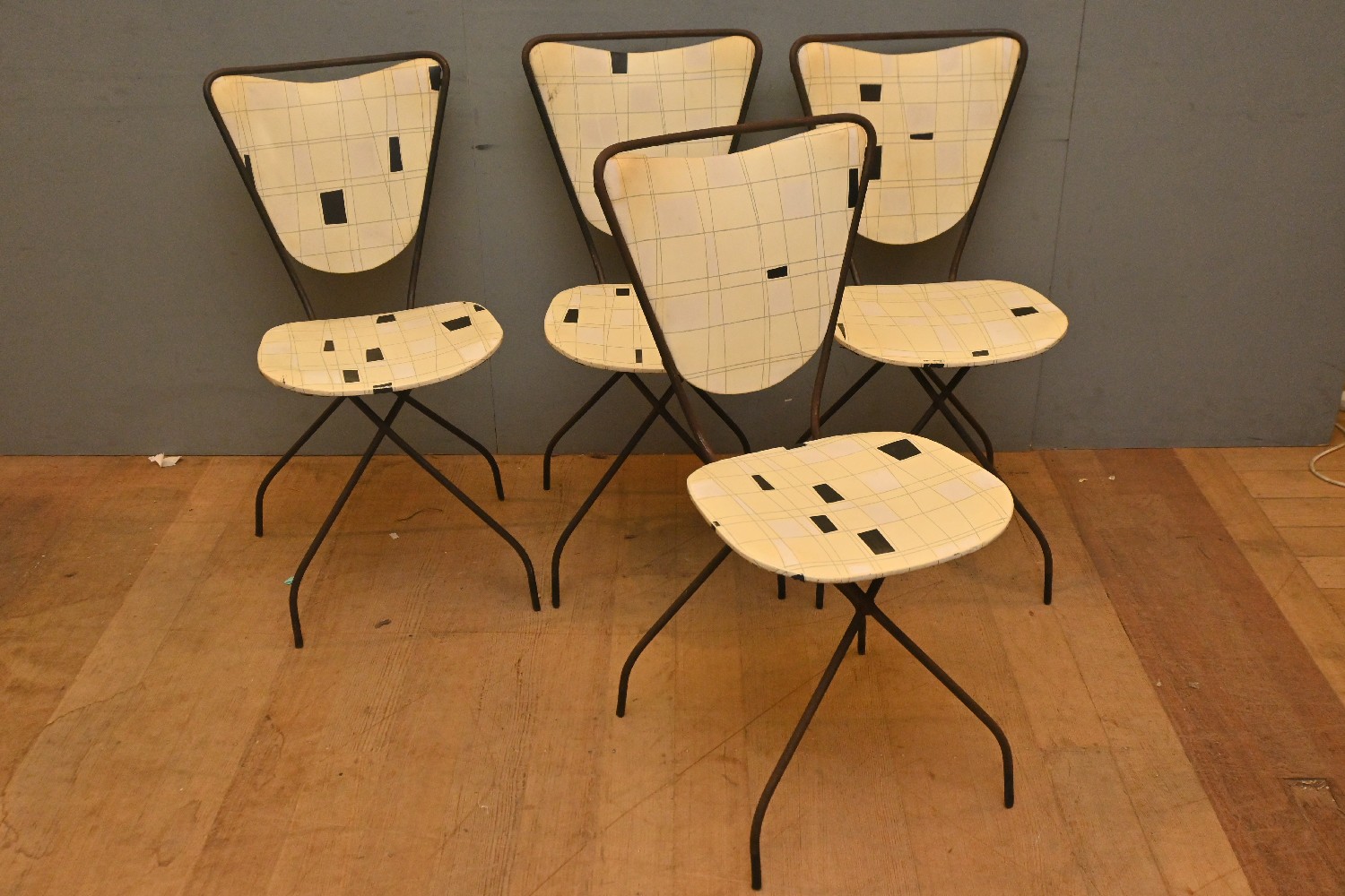 SET OF FOUR 1950S STEEL FRAMED VINYL COVERED CHAIRS (A/F) (87H X 43W X 45D CM) (LEONARD JOEL DELIVERY SIZE: LARGE)