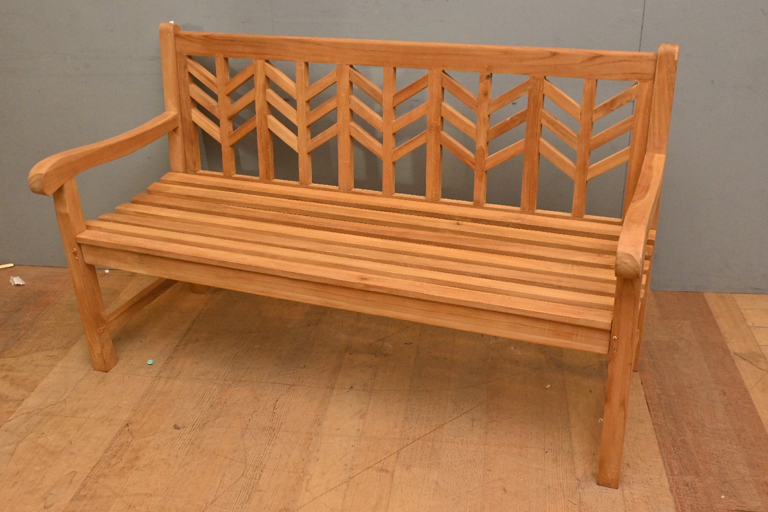 A TEAK GARDEN BENCH SEAT (91H X 151W X 67D CM) (PLEASE NOTE THIS HEAVY ITEM MUST BE REMOVED BY CARRIERS AT THE CUSTOMER'S EXPENSE. LEONARD JOEL STAFF CANNOT ASSIST CARRYING THIS ITEM) (LARGE ITEM)