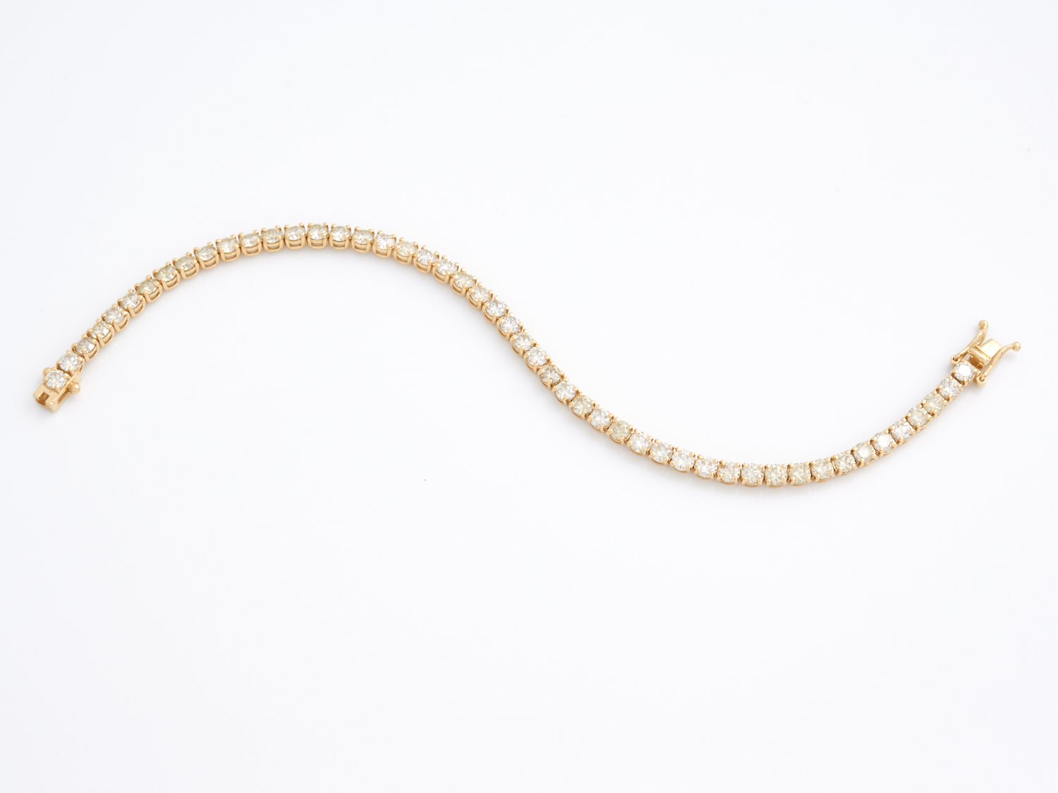 A DIAMOND LINE BRACELET IN 18CT GOLD, THE DIAMONDS TOTALLING 7.40CTS, 180MM, ACCOMPANIED BY A VALUATION