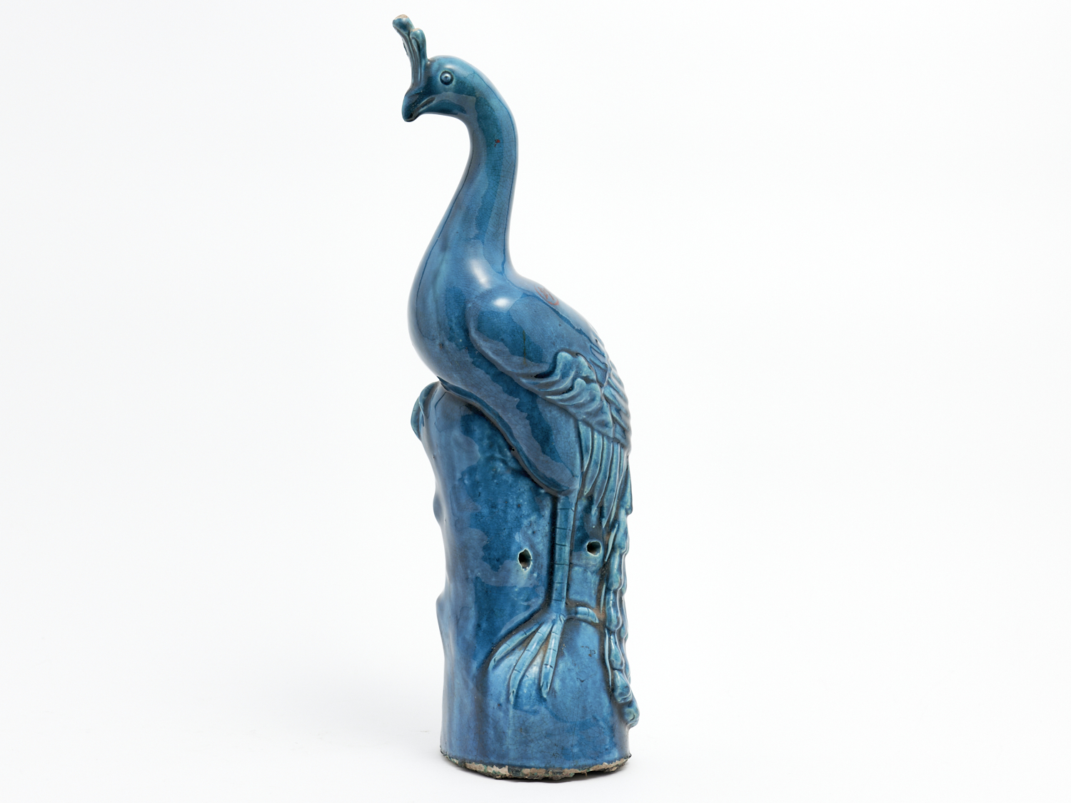 A CHINESE BLUE GLAZED PEACOCK H.45CM, LEONARD JOEL DELIVERY SIZE: MEDIUM