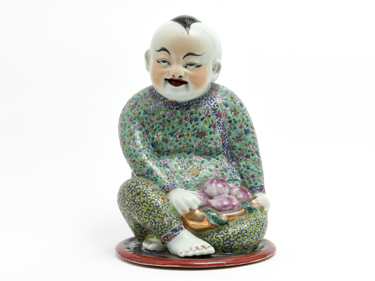 A CHINESE PORCELAIN FIGURE OF A BOY WITH PEACHES H.32CM, LEONARD JOEL DELIVERY SIZE: SMALL