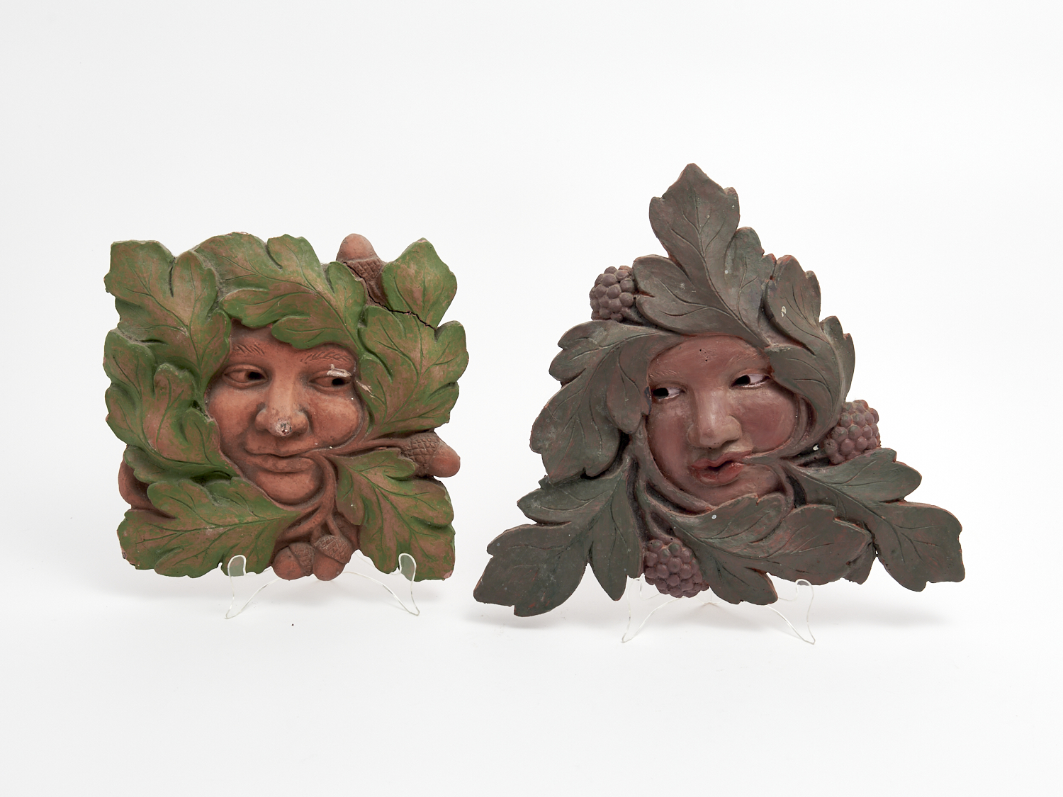 TWO CERAMIC WALL PLAQUES W.36CM (LARGEST) (ONE A/F), LEONARD JOEL DELIVERY SIZE: MEDIUM