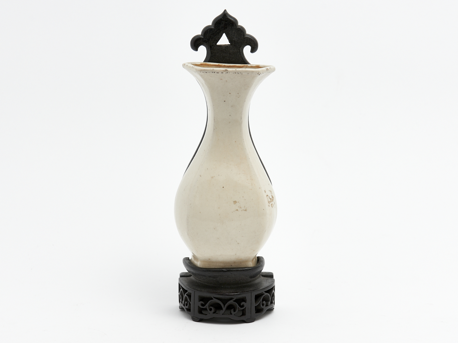 A CHINESE WHITE PORCELAIN WALL HANGING VASE WITH WOODEN MOUNT, 19TH CENTURY H.14.5CM (NOT INCLUDING STAND), LEONARD JOEL DELIVERY SIZE: SMALL