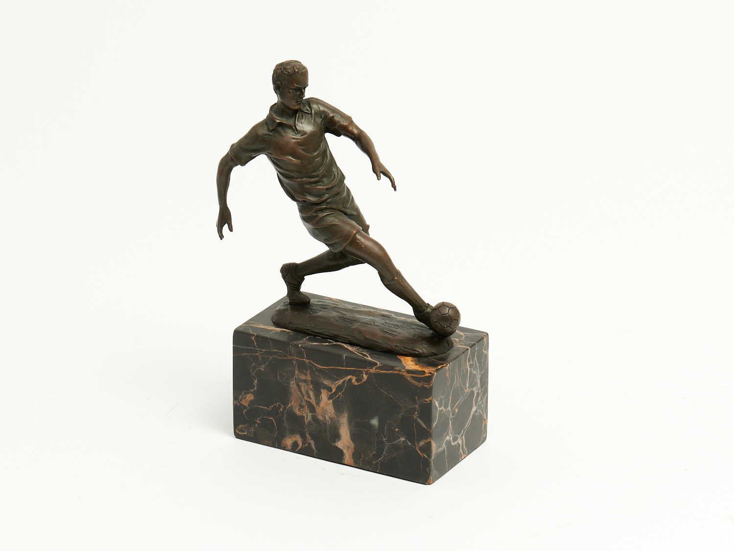 A BRONZE AND MARBLE SOCCER PLAYER FIGURE SIGNED MILO H.23CM, LEONARD JOEL LOCAL DELIVERY: SMALL
