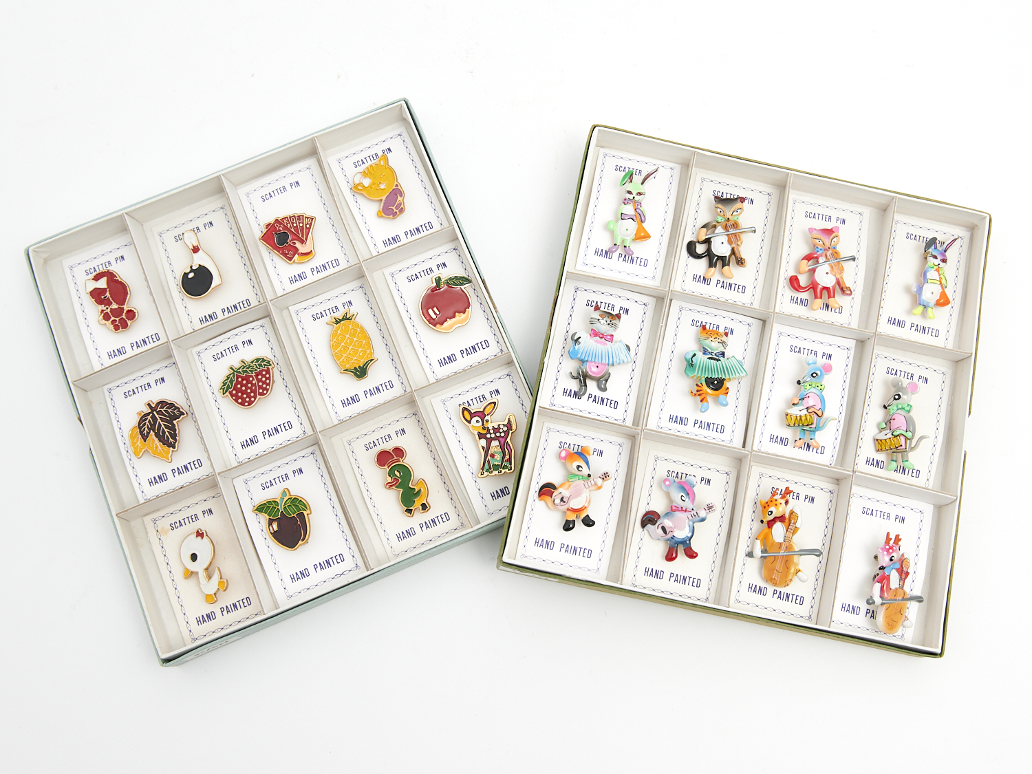 TWO BOXES OF HAND PAINTED SCATTER PINS (TWELVE PER BOX) H.4CM (LARGEST), LEONARD JOEL LOCAL DELIVERY: SMALL
