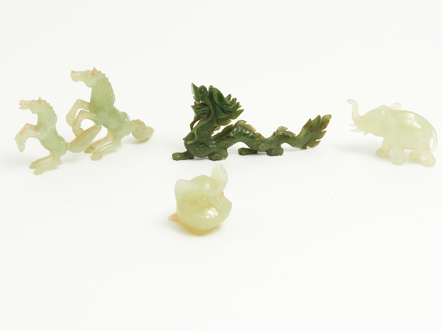A COLLECTION OF FOUR CHINESE CARVED HORSE AND DRAGON FIGURES L.15CM, LEONARD JOEL LOCAL DELIVERY: SMALL
