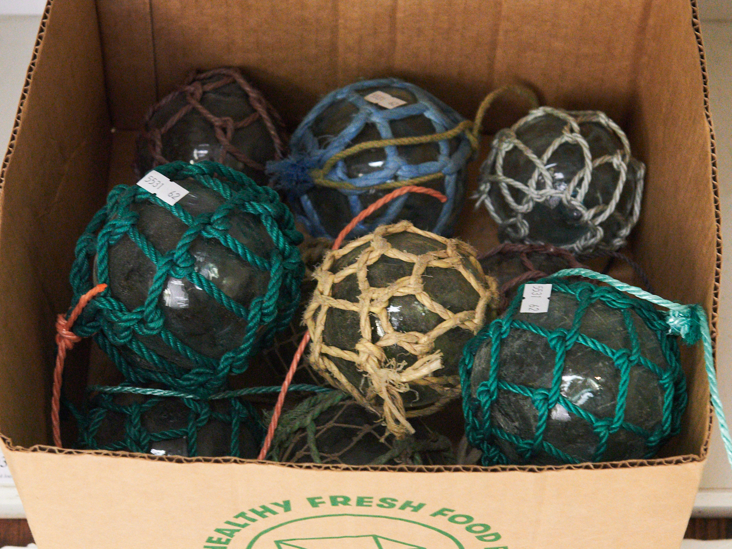 A GROUP OF TWELVE MINIATURE GLASS FISHING NET FLOATS DIA.10CM, LEONARD JOEL LOCAL DELIVERY: SMALL