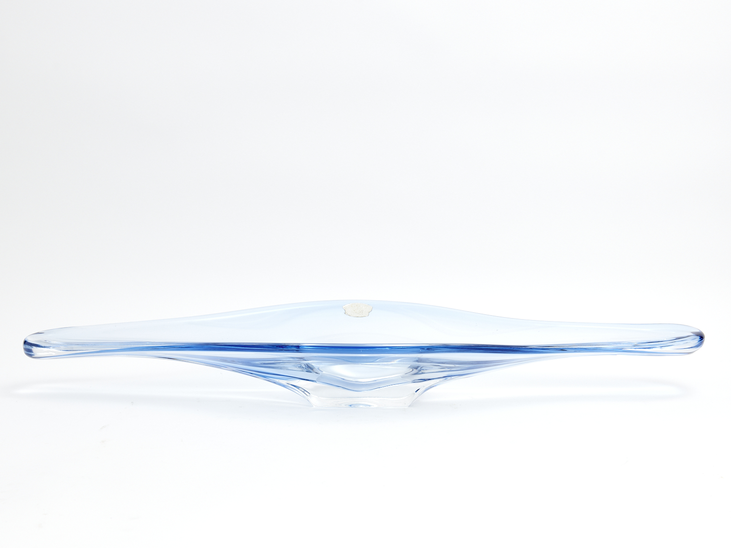 A LARGE 1940S VAL ST LAMBERT BLUE GLASS CENTRE PLATE WITH LABEL L.77.5CM, LEONARD JOEL LOCAL DELIVERY: MEDIUM