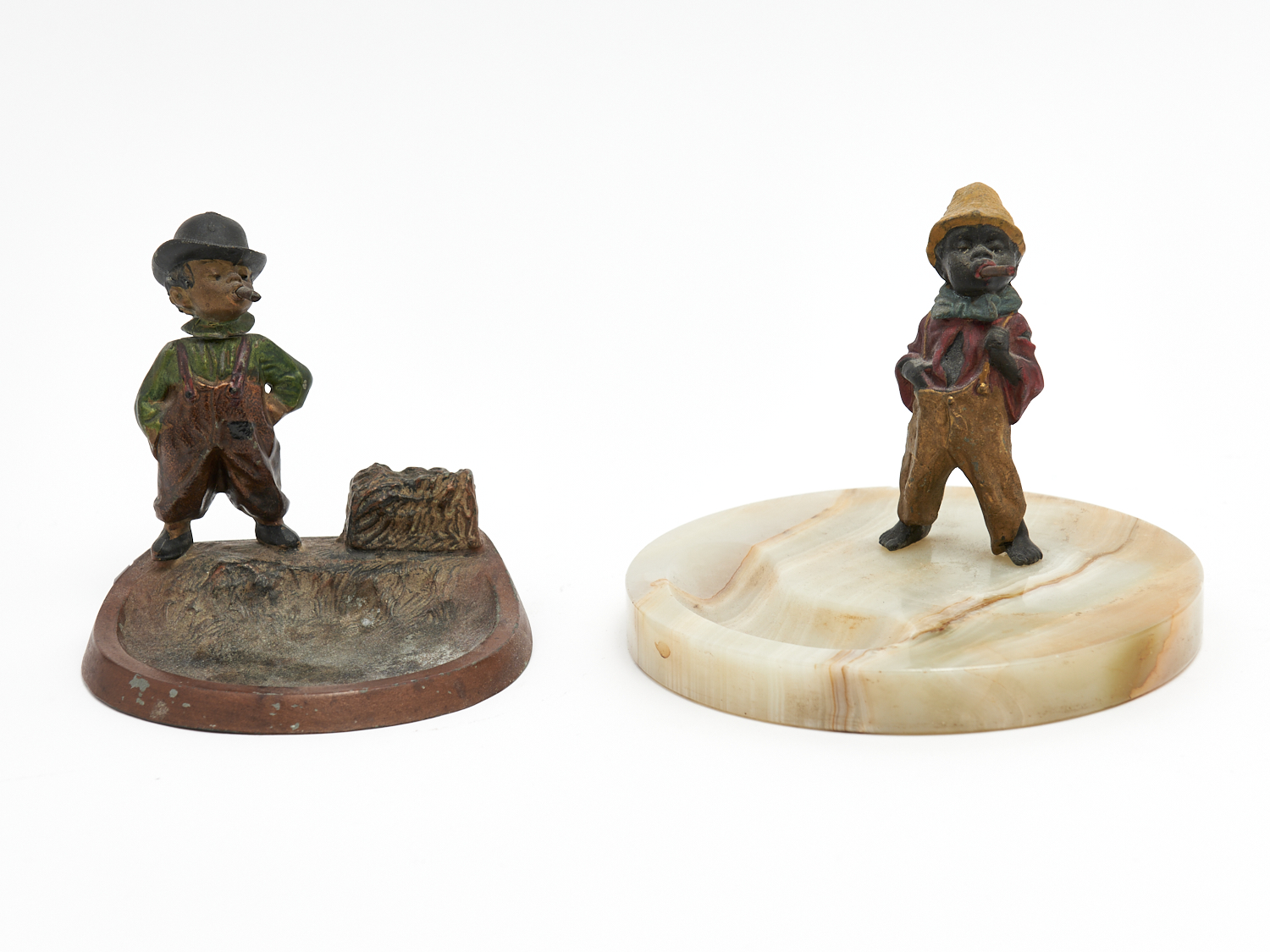 TWO COLD PAINTED VIENNESE FIGURAL ASHTRAYS DIA.15.5CM (LARGEST), LEONARD JOEL DELIVERY SIZE: SMALL