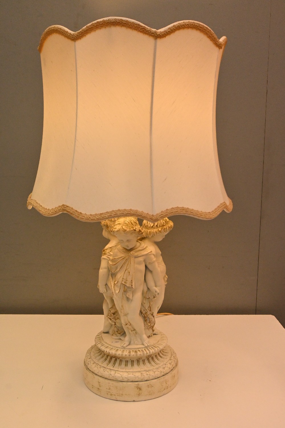 A CERAMIC CHERUB BASED TABLE LAMP (91H X 55D CM) (LEONARD JOEL DELIVERY SIZE: LARGE)