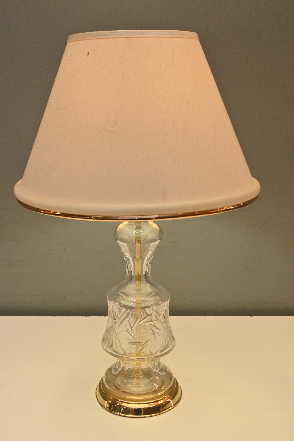 A CRYSTAL & BRASS TABLE LAMP (68H X 44D CM) (LEONARD JOEL DELIVERY SIZE: MEDIUM)