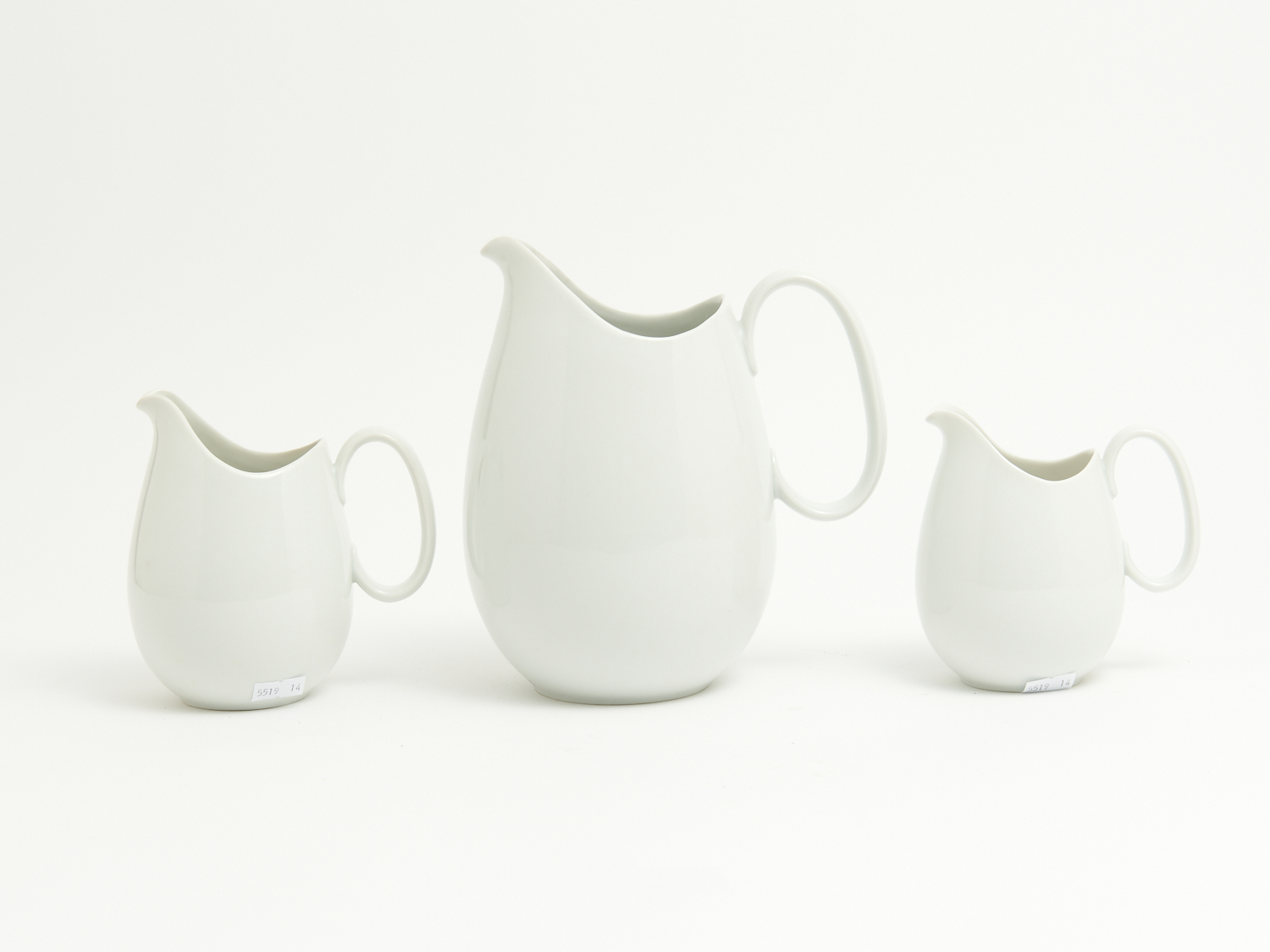 A SET OF THREE MID-CENTURY PORCELAIN JUGS BY RAYMOND LOEWY FOR KPM KRISTER GERMANY H.20CM, LEONARD JOEL DELIVERY SIZE: MEDIUM