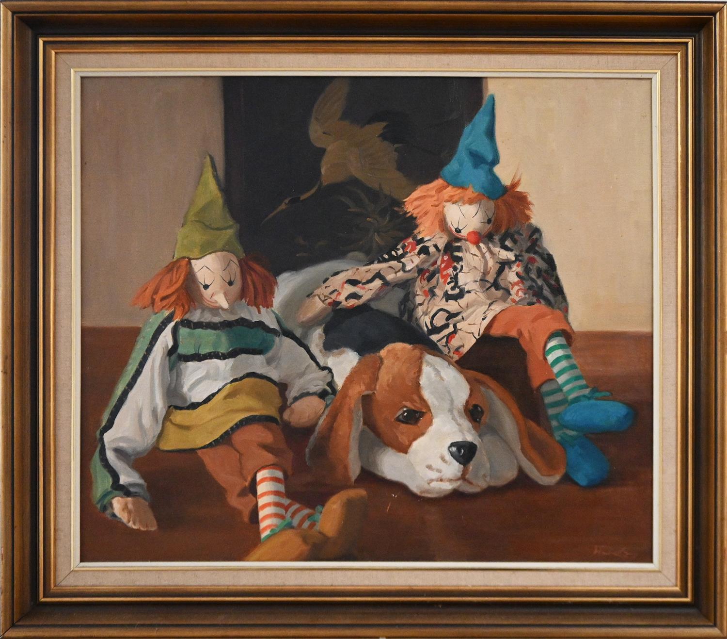 HENRY HANKE, MAN'S BEST FRIEND, OIL ON CANVASBOARD, SIGNED LOWER RIGHT, 60 X 70CM, FRAME SIZE: 77 X 88CM