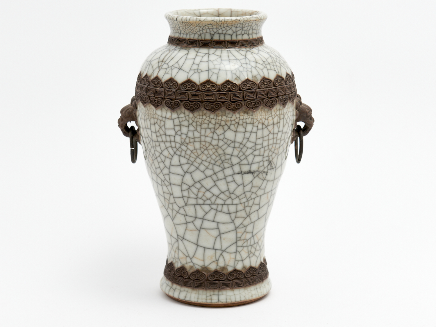 A CHINESE CRACKLE-GLAZED VASE H.24CM (A/F, CHIP TO RIM), LEONARD JOEL DELIVERY SIZE: SMALL