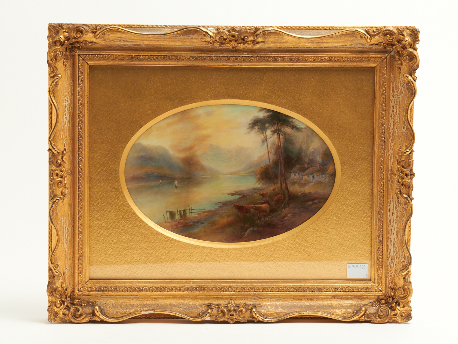 A FRAMED ROYAL WORCESTER PORCELAIN PLAQUE BY JOHN STINTON, DEPICTING HIGHLAND CATTLE (RESTORED) 32.5 X 40CM (FRAMED), LEONARD JOEL DELIVERY SIZE: MEDIUM.