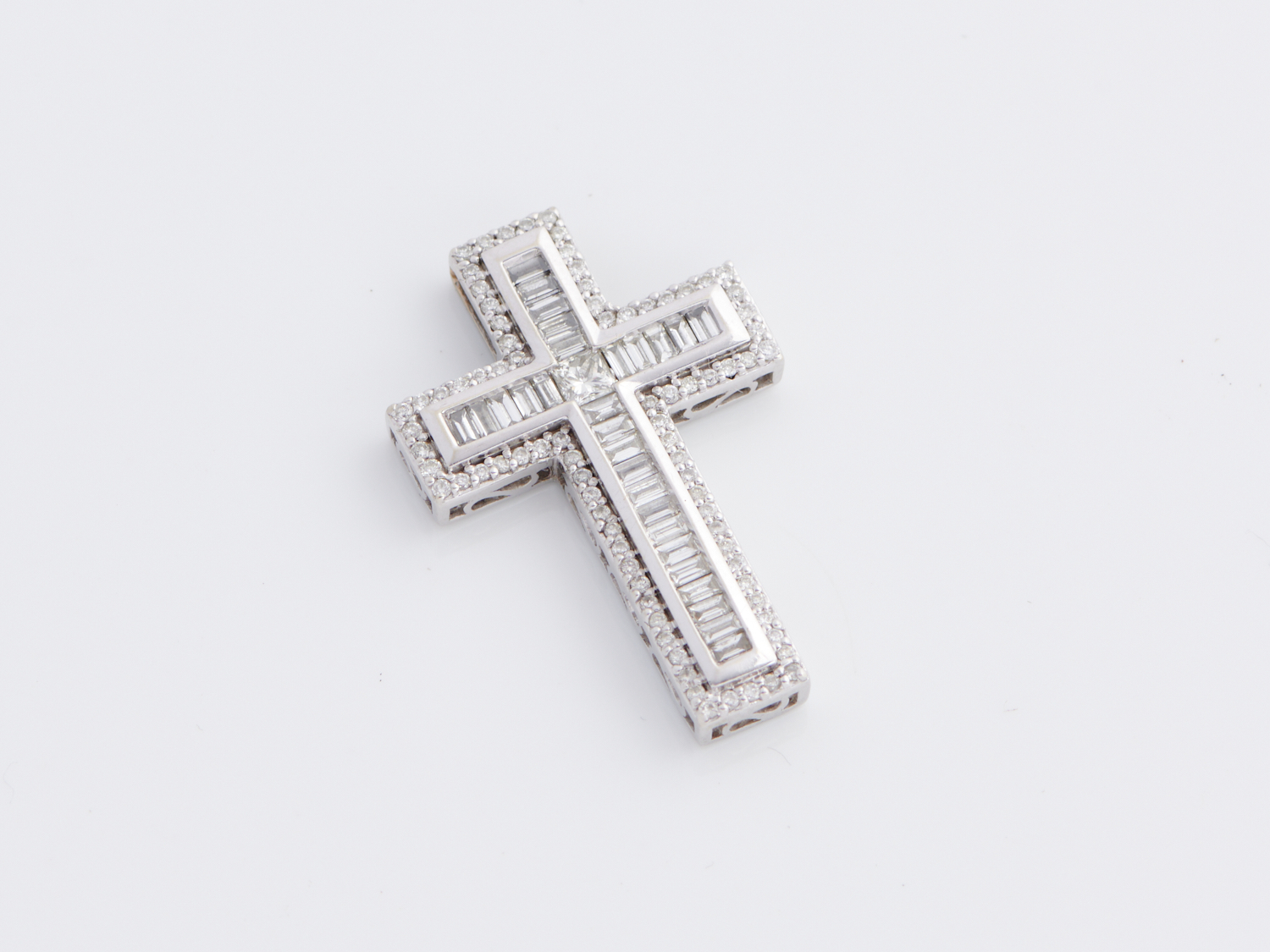 A DIAMOND CROSS IN 18CT WHITE GOLD, THE DIAMONDS TOTALLING 1.57CTS, 30 X 20MM, 6.81GMS, ACCOMPANIED BY A VALUATION