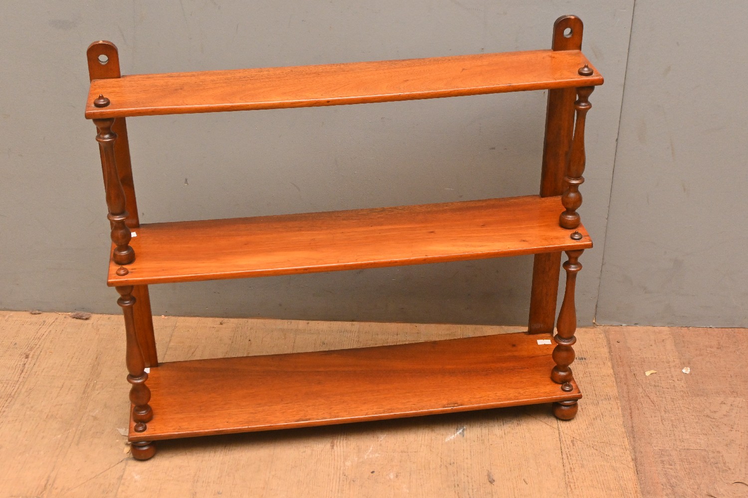 A GOOD SET OF LATE 19TH CENTURY GRADUATED FRUITWOOD HANGING SHELVES (60H X 68W X 20D CM) (LEONARD JOEL DELIVERY SIZE: MEDIUM)