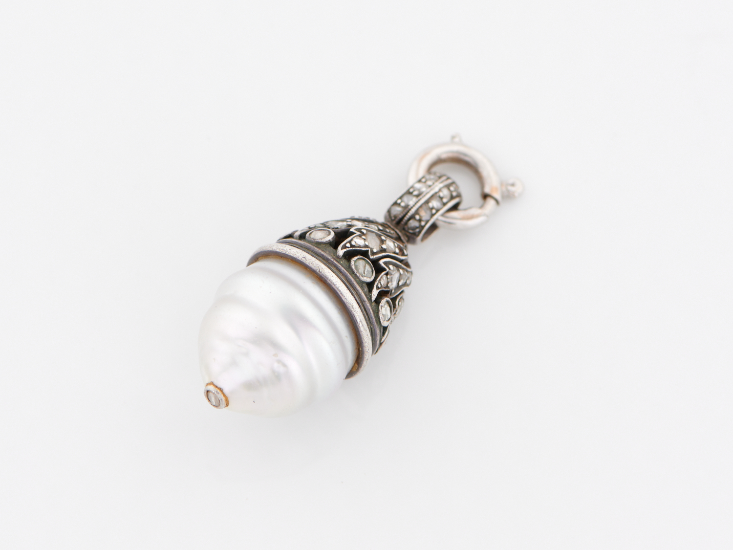 A PEARL AND DIAMOND ENHANCER IN STERLING SILVER, LENGTH APPROXIMATELY 35MM