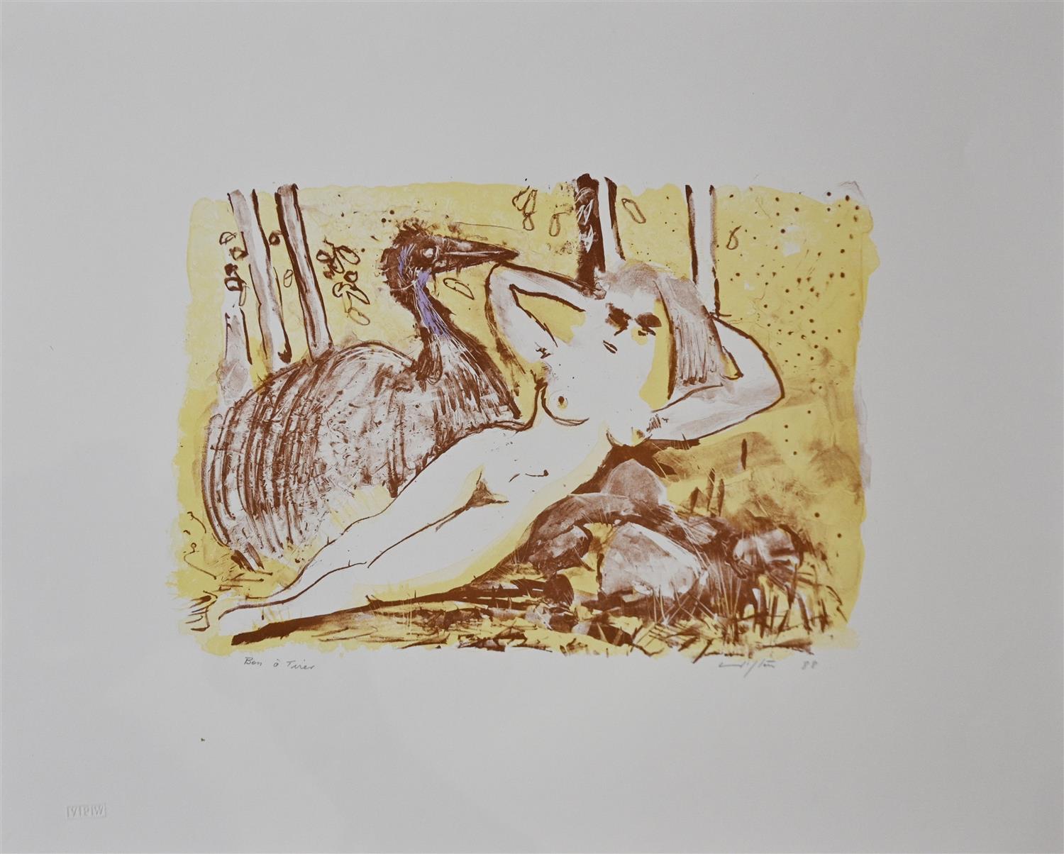 CLIFTON PUGH, LEDA AND EMU 1988, LITHOGRAPH B.A.T, SIGNED AND DATED LOWER RIGHT, 57 X 72CM (SHEET)
