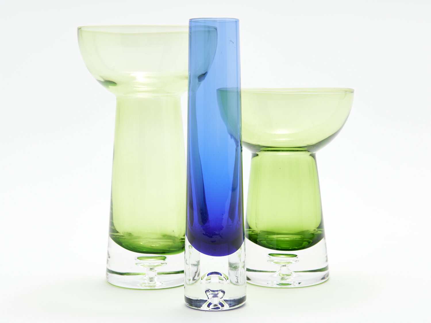 THREE VINTAGE SCANDINAVIAN ART GLASS VASES H.20CM (TALLEST), LEONARD JOEL DELIVERY SIZE: SMALL
