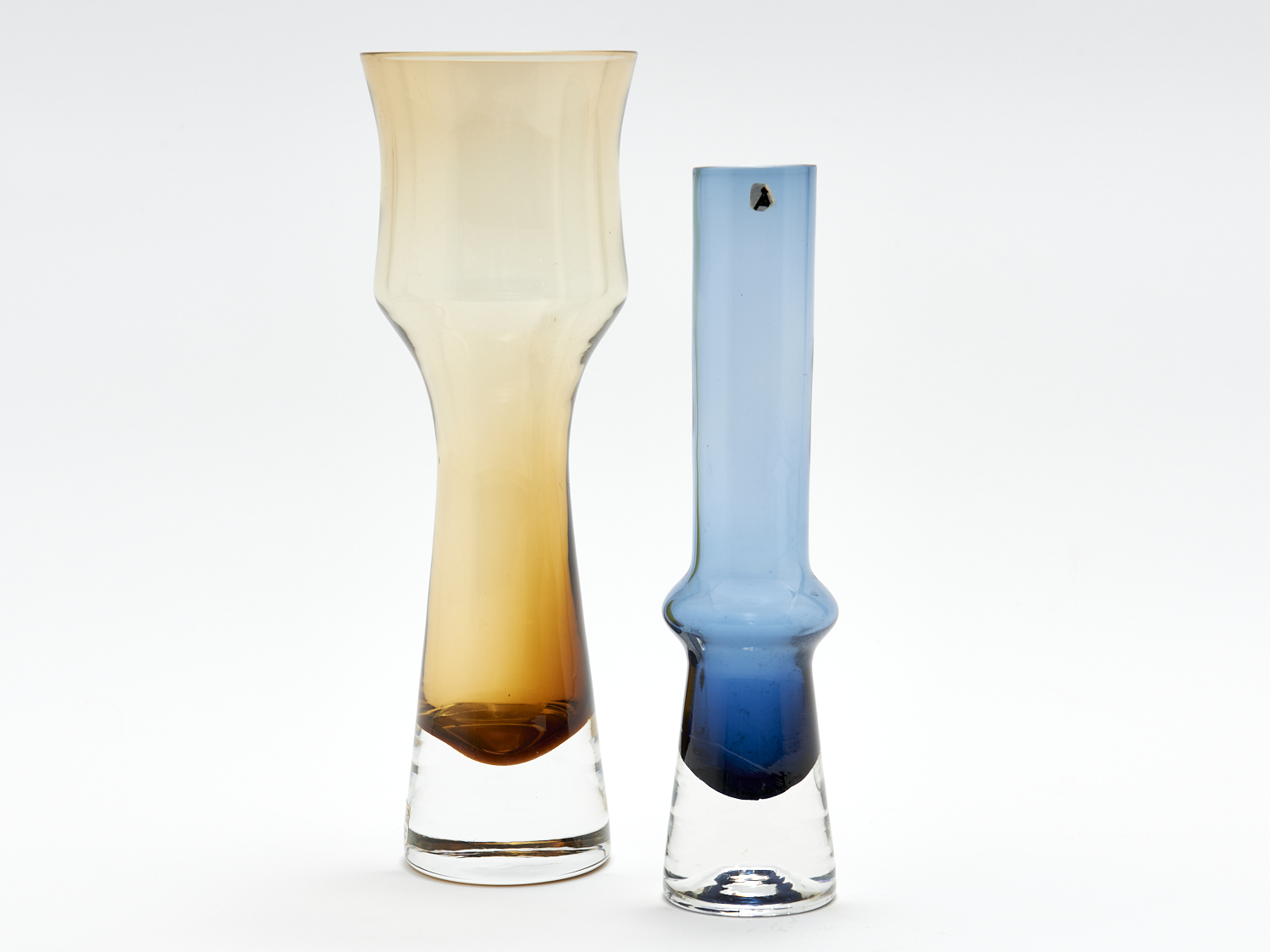 A PAIR OF SWEDISH VINTAGE ART GLASS VASES BY ASEDA, ONE DESIGNED BY BO BORGSTRUM H.25.5CM, LEONARD JOEL DELIVERY SIZE: SMALL