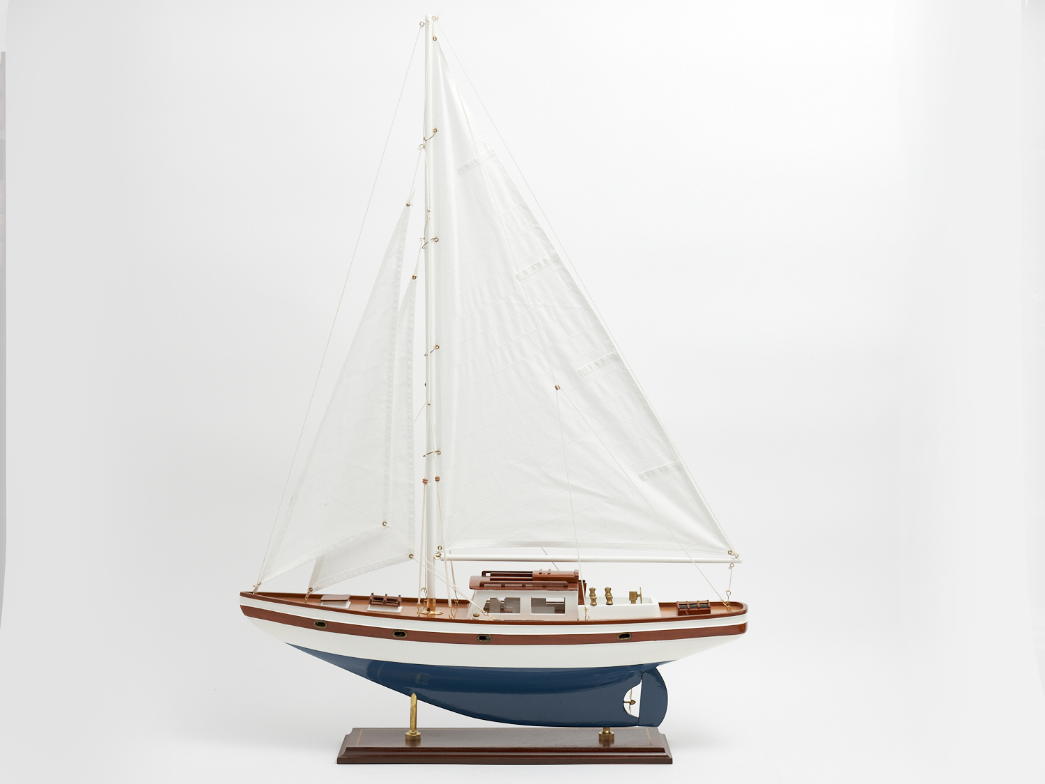 A MODEL SAILING BOAT ON STAND H.88CM, LEONARD JOEL DELIVERY SIZE: MEDIUM