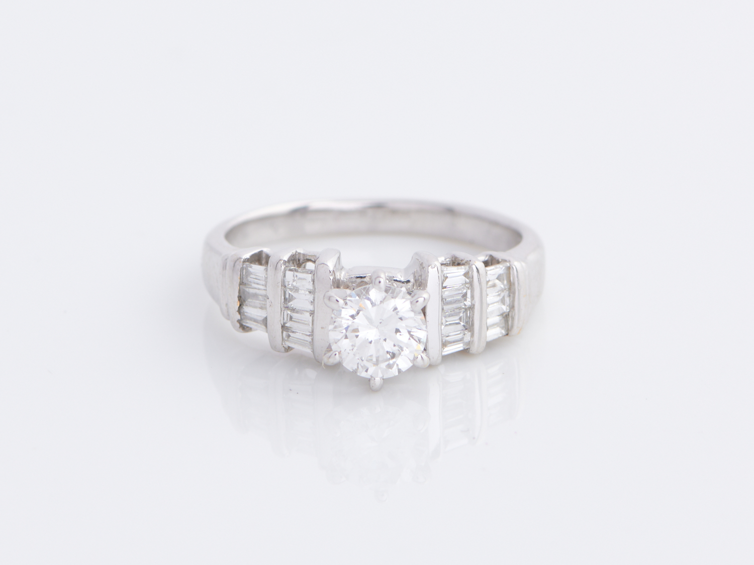 A DIAMOND RING IN 14CT WHITE GOLD, SIZE I, 3.9GMS