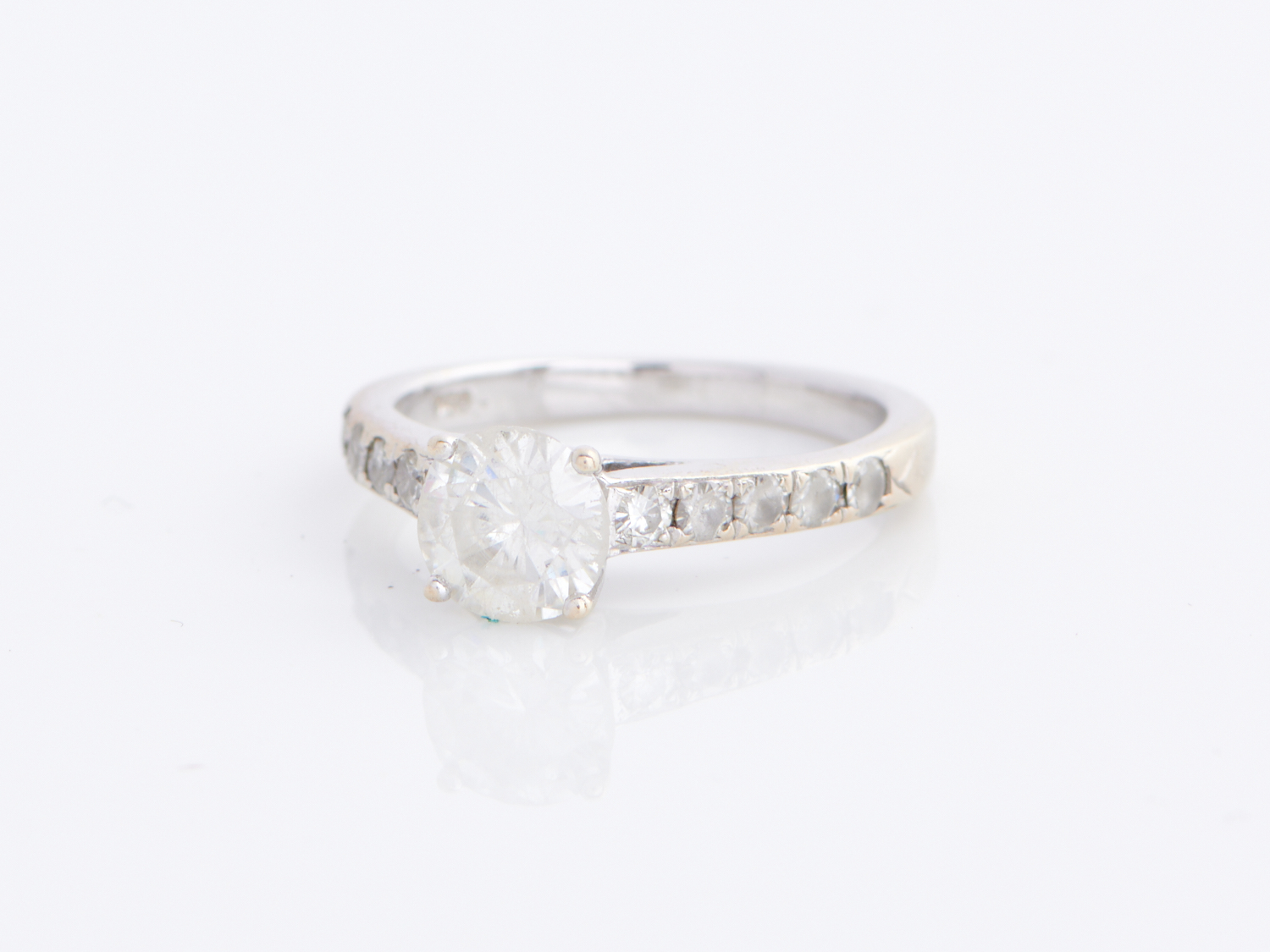 A DIAMOND SOLITAIRE SET RING IN 18CT WHITE GOLD, THE DIAMOND WEIGHING 2.02CTS, SIZE M