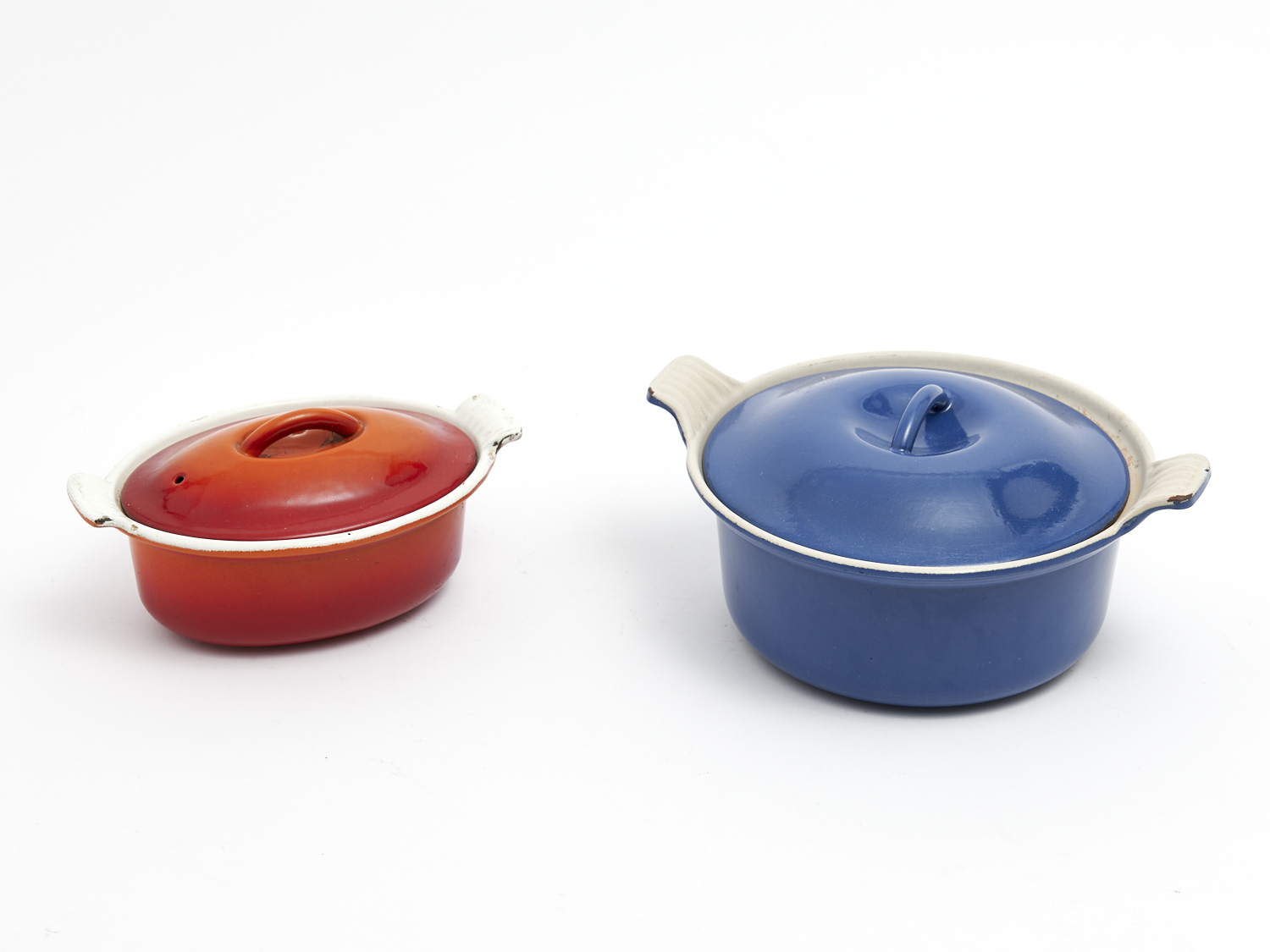 A PAIR OF SMALL LE CREUSET LIDDED CASSEROLES DIA.18.5CM, LEONARD JOEL DELIVERY SIZE: SMALL