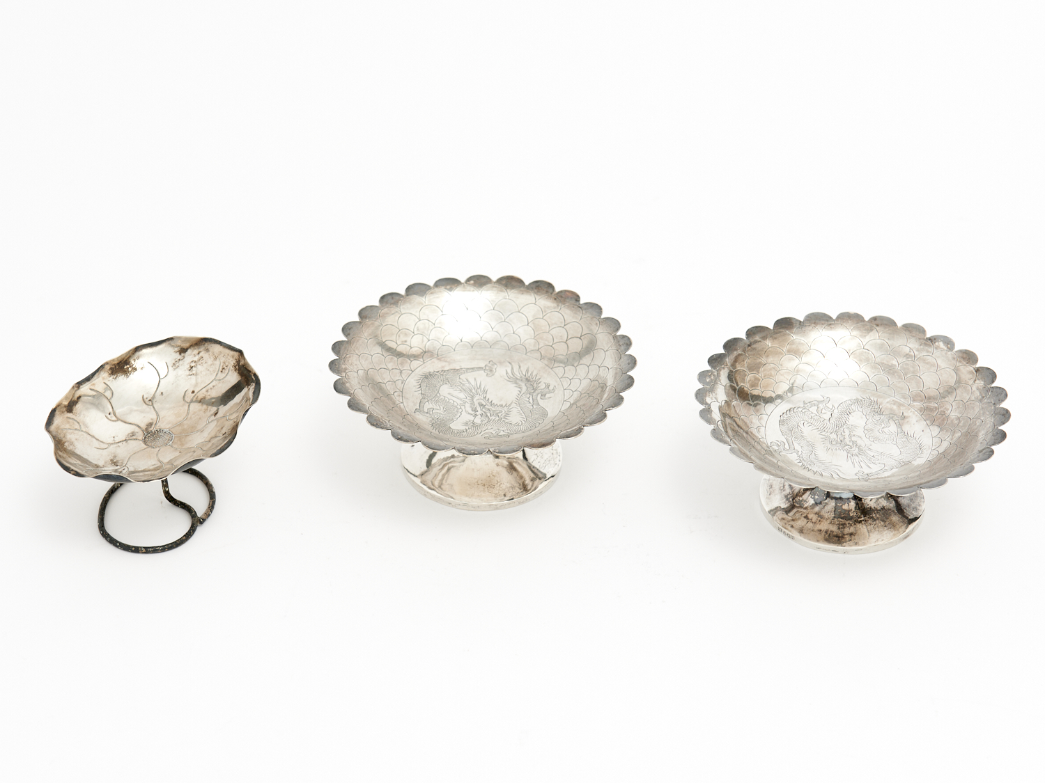 A PAIR CHINESE EXPORT FOOTED DRAGON DISHES AND ONE OTHER, ALL WING NAM, HONG KONG 270G, DIA.12.5CM (LARGEST), LEONARD JOEL DELIVERY SIZE: SMALL