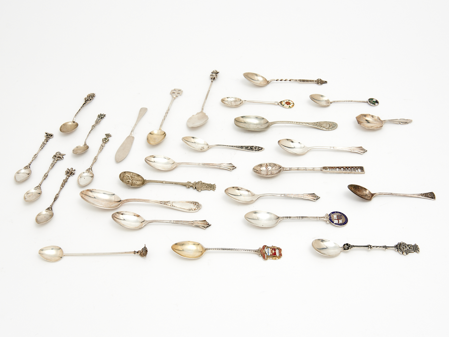 A COLLECTION OF 800 AND STERLING SILVER SPOONS TOTAL WEIGHT 318G, L.14CM, LEONARD JOEL DELIVERY SIZE: SMALL