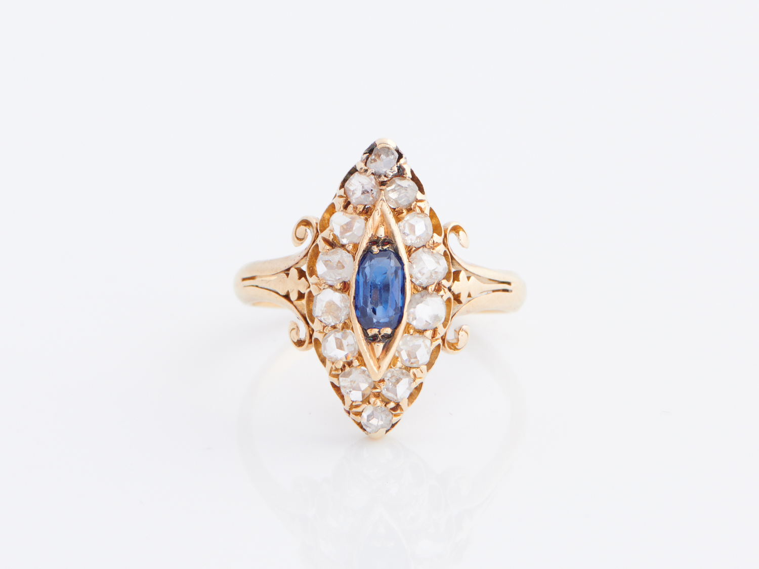 A SAPPHIRE AND DIAMOND RING IN 18CT GOLD, SIZE L, 3.5GMS